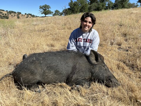 TODAY'S FILM IS A SHORT VIDEO MEMORY OF MY DAUGHTER AND I HUNTING HER FIRST PIG.